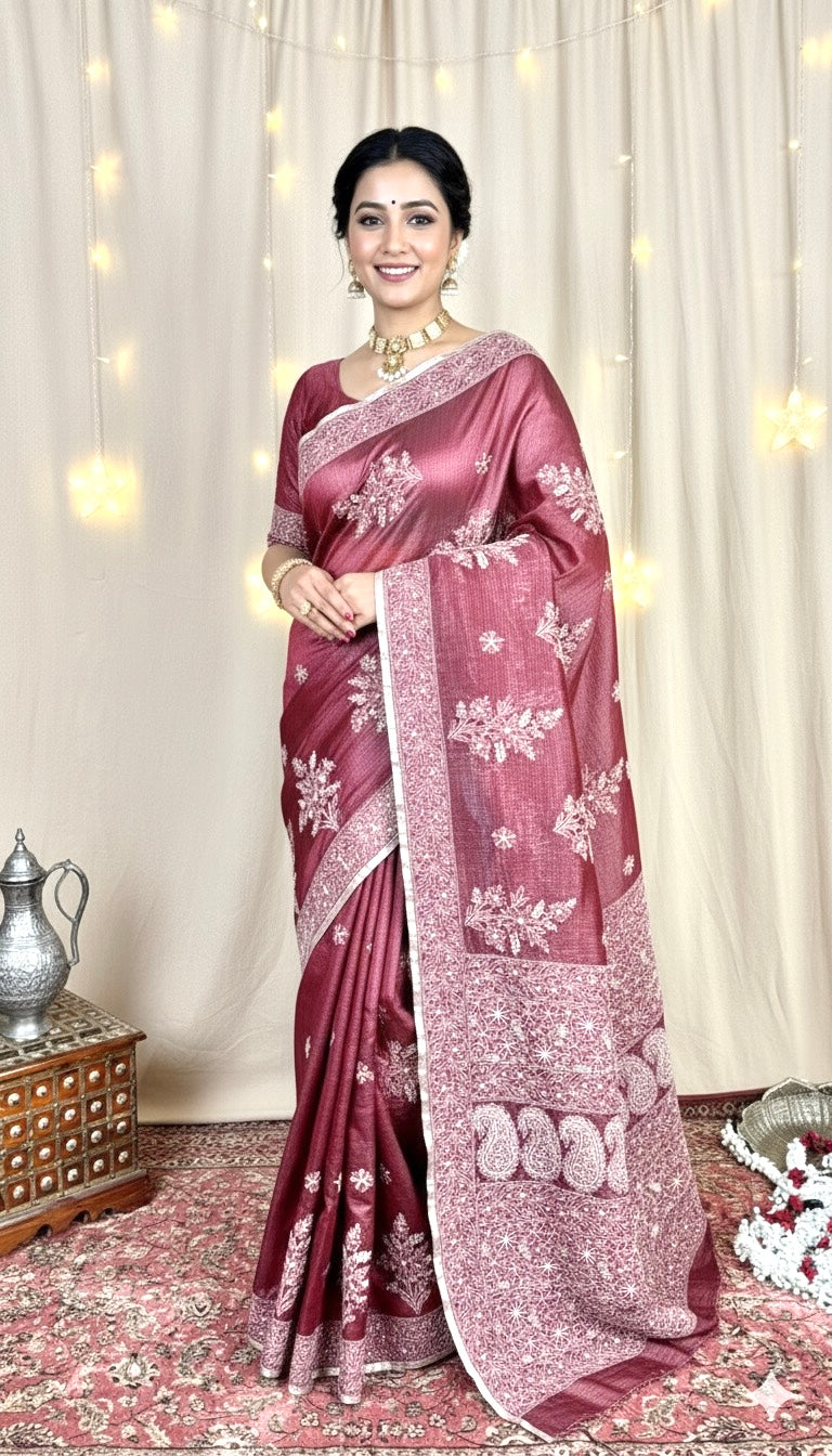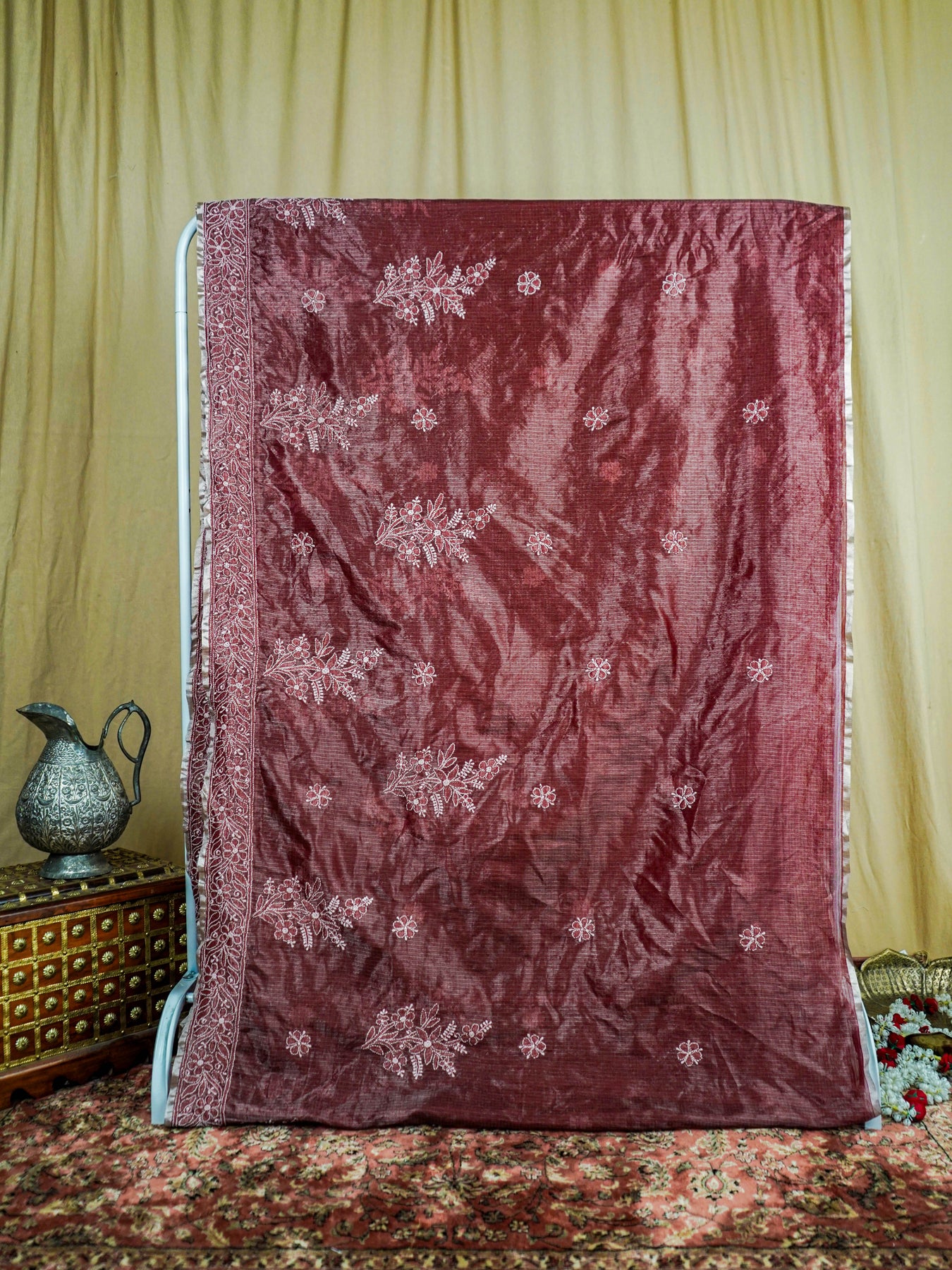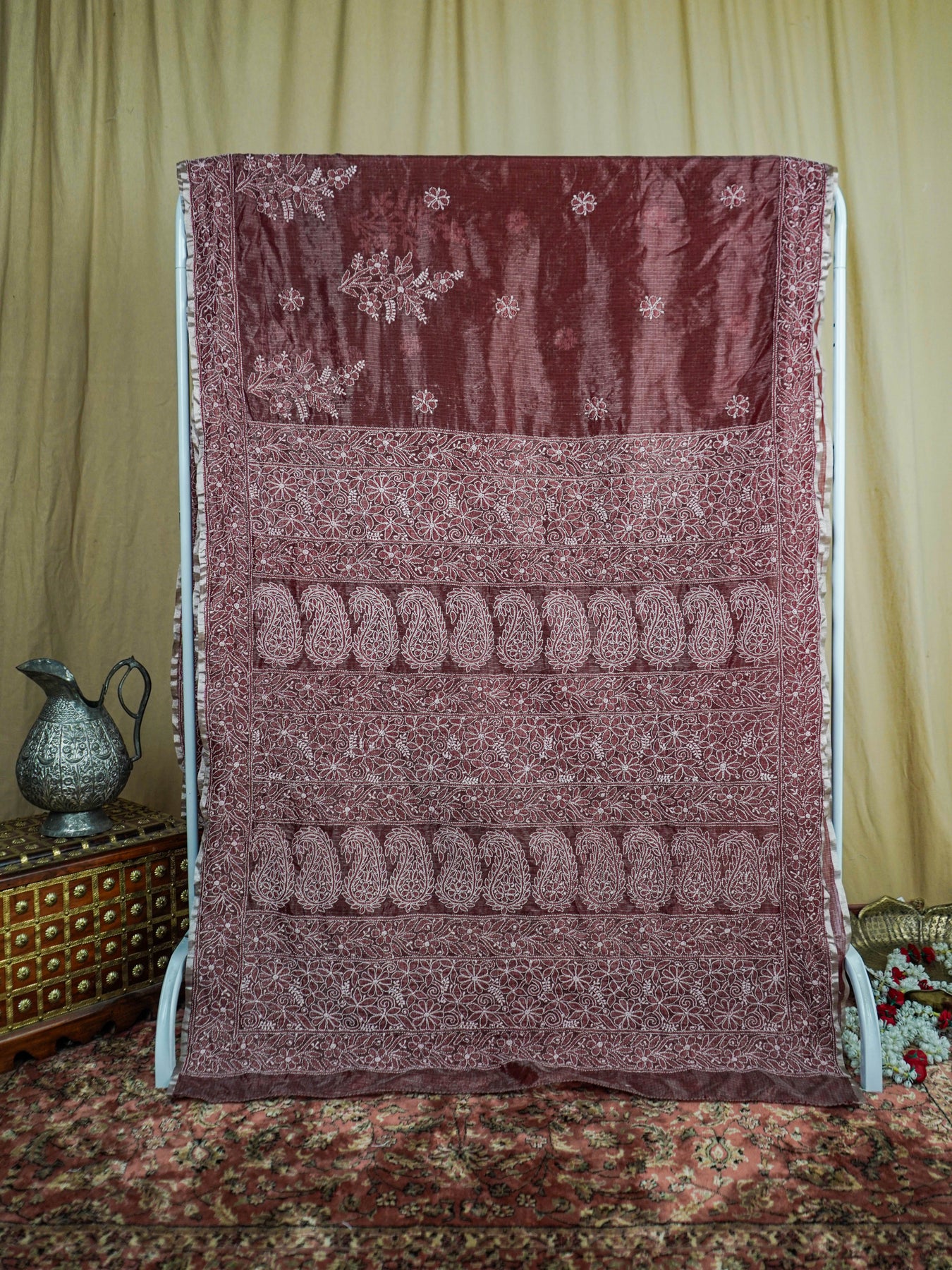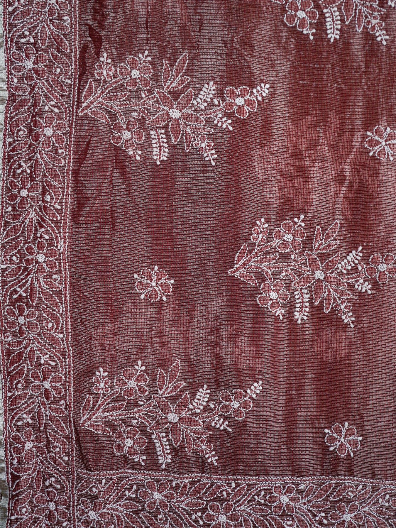 Fabric : Banarsi ZariLength : 6.5 metres Height : 44 inches Blouse Fabric : 1 metre Thread : Type : Cotton Embroidery :100% hand embroidered Embellishments : None Occasion : Daily Wear Washing instructions : Dry Clean Storage instructions : Use muslin bags to safeguard your sarees Trivia : Chikankari is an Art of delicate handwork of Lucknow. It is a handcrafted process where the wooden blocks are manually carved in various designs, and the natural stew for printing is prepared, and printed on the cloth. The chikankari craftsmen then use ten ary of the needlecraft embroidery, and perform the needlework artistically. There are 32 stitches of chikankari broadly classified into Raised stitch, Embossed and Flat stitch. Time Period Of Handmade- It took 2 to 3 months for the product to be handcrafted from designing to finishing. Disclaimer : There might be a 10-15% difference in colour due to high screen resolution. Therefore, exchanges due to colour difference is not acceptable Misspelled : Nurkari, Noorkaree, Nurkaari, Noorkary, Noor-Kari