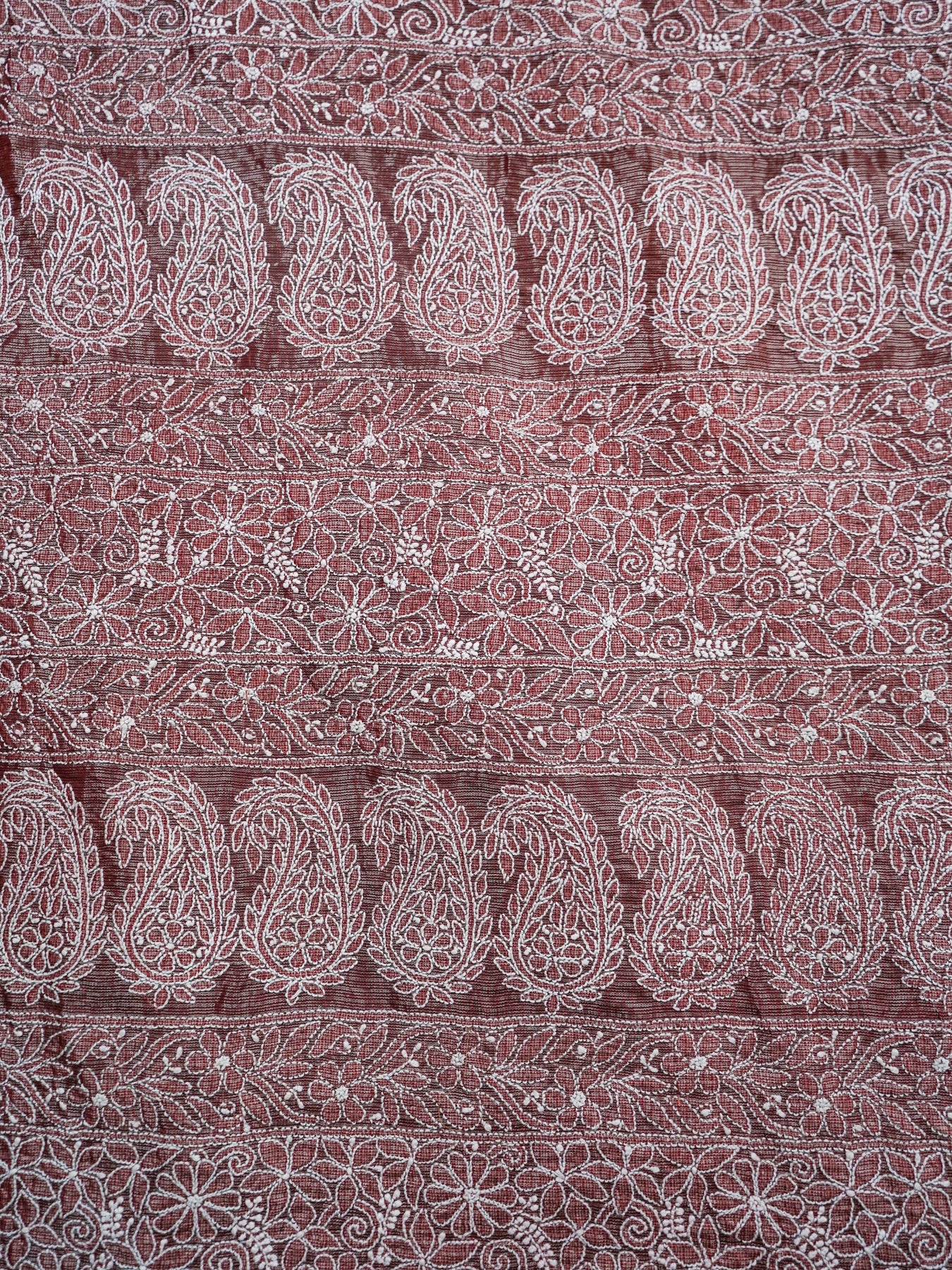 Chikankari is an Art of delicate handwork of Lucknow. It is a handcrafted process where the wooden blocks are manually carved in various designs, and the natural stew for printing is prepared, and printed on the cloth. The chikankari craftsmen then use ten ary of the needlecraft embroidery, and perform the needlework artistically. There are 32 stitches of chikankari broadly classified into Raised stitch, Embossed and Flat stitch.