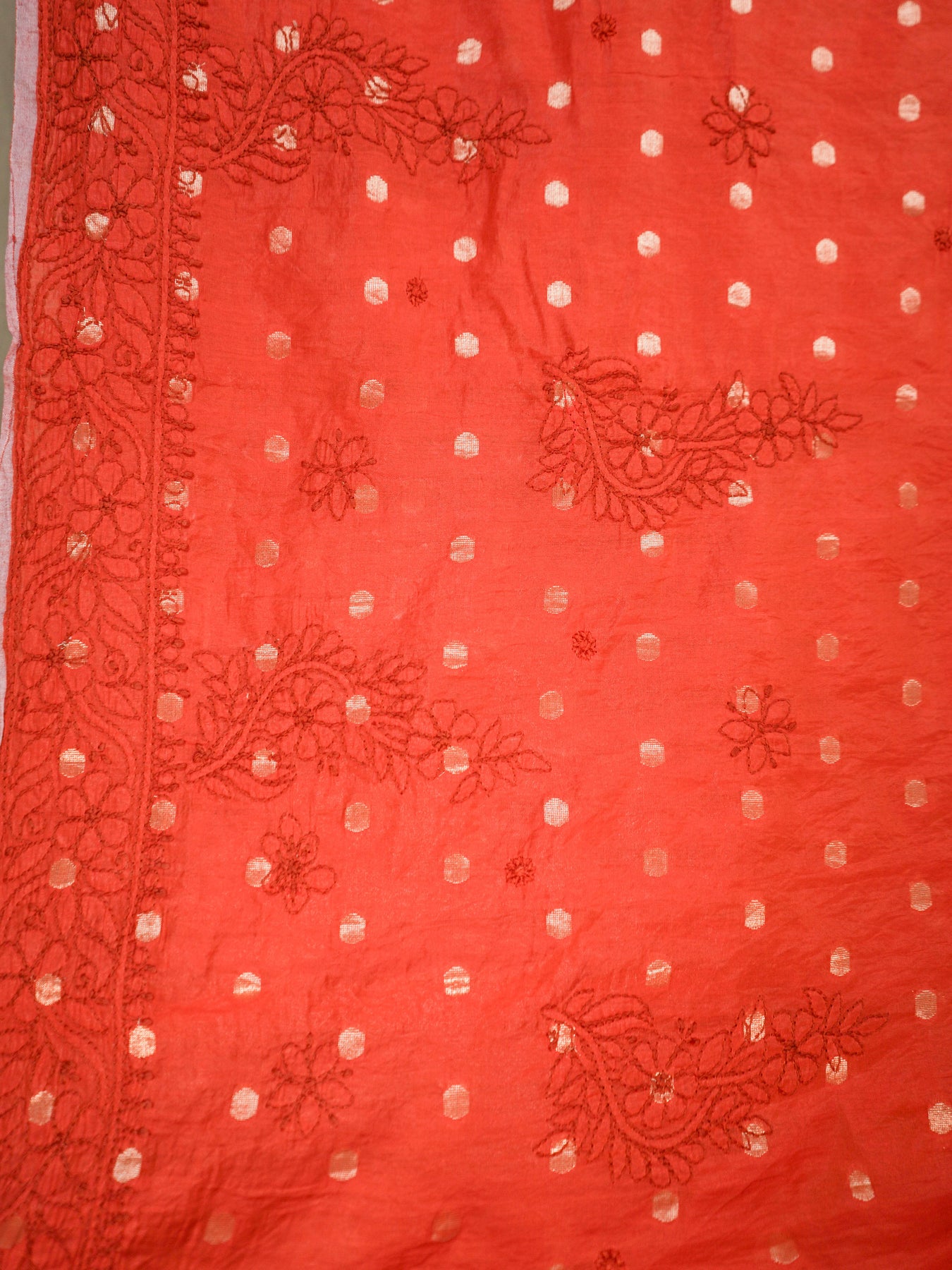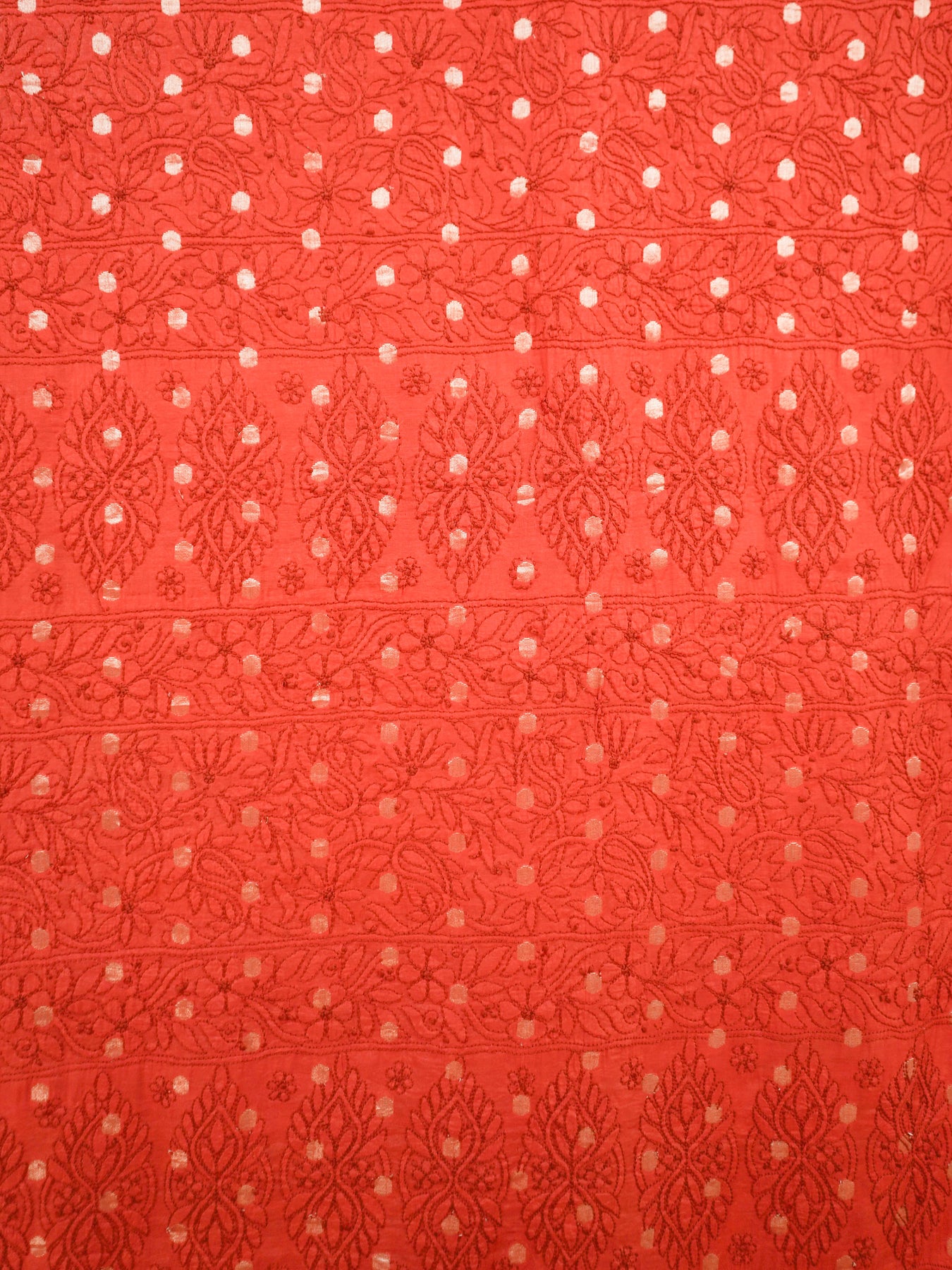 Chikankari is an Art of delicate handwork of Lucknow. It is a handcrafted process where the wooden blocks are manually carved in various designs, and the natural stew for printing is prepared, and printed on the cloth. The chikankari craftsmen then use ten ary of the needlecraft embroidery, and perform the needlework artistically. There are 32 stitches of chikankari broadly classified into Raised stitch, Embossed and Flat stitch.