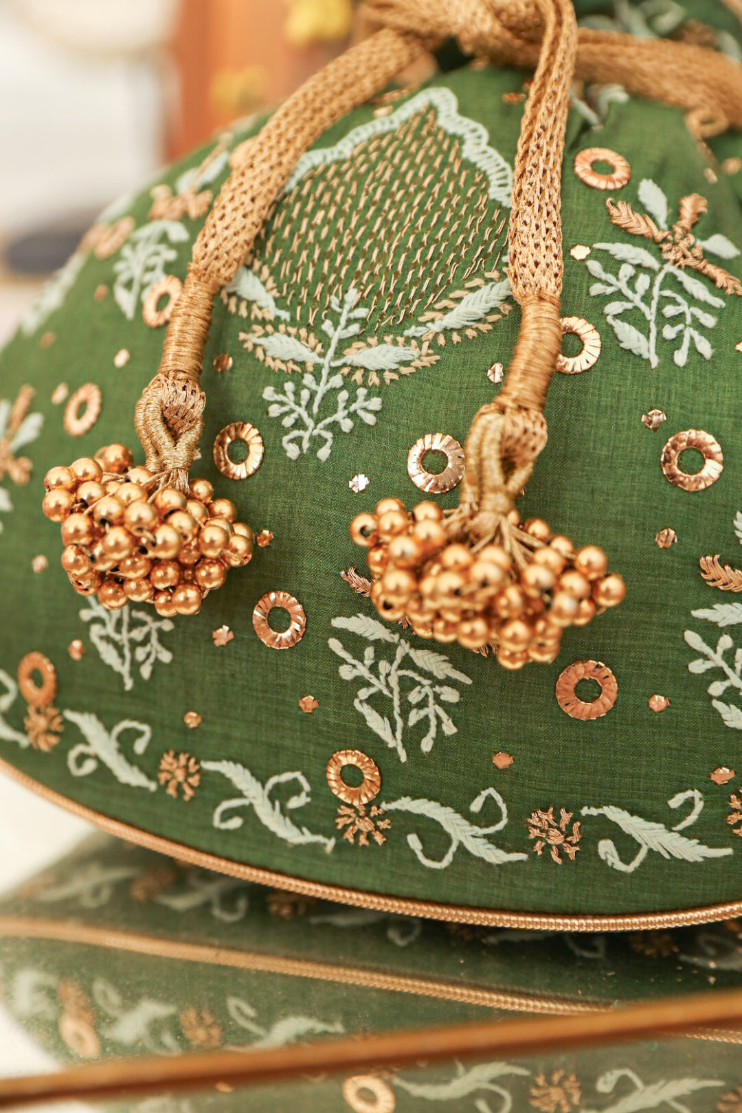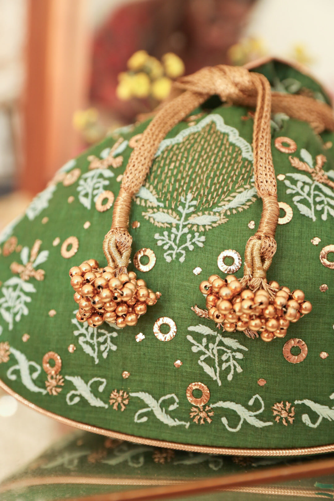 Dimensions : The potli is light and easy to carry. The dimension of the potli are 10 Inches x 10 Inches (Length x Width).