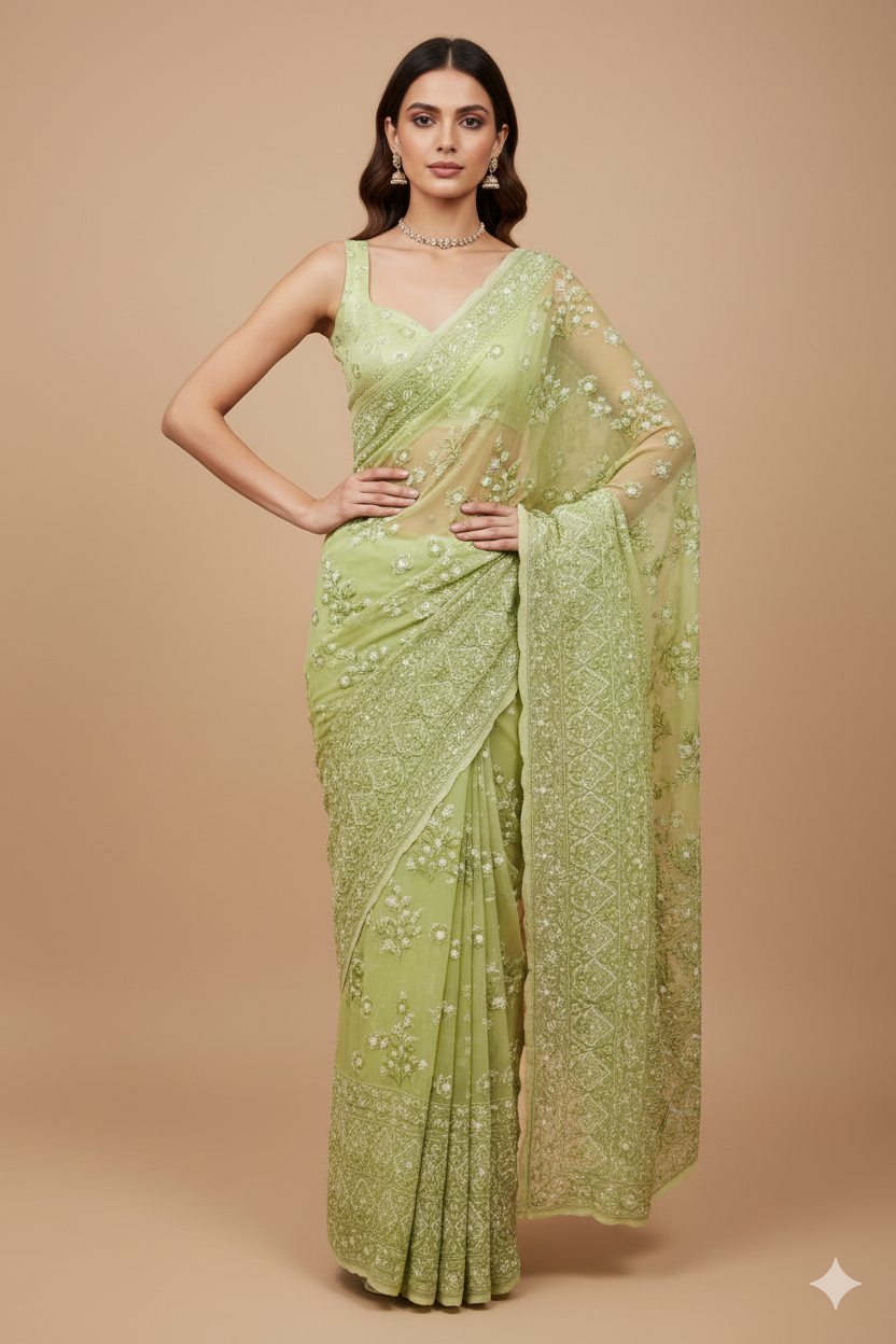 Haniya Georgette Gota & Patti Work Chikankari Saree