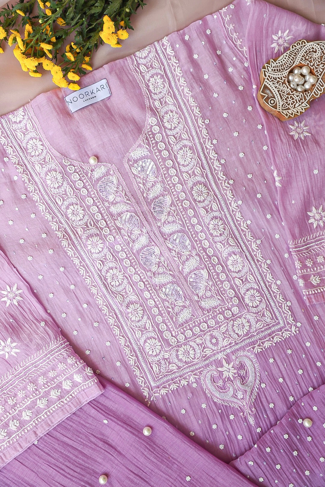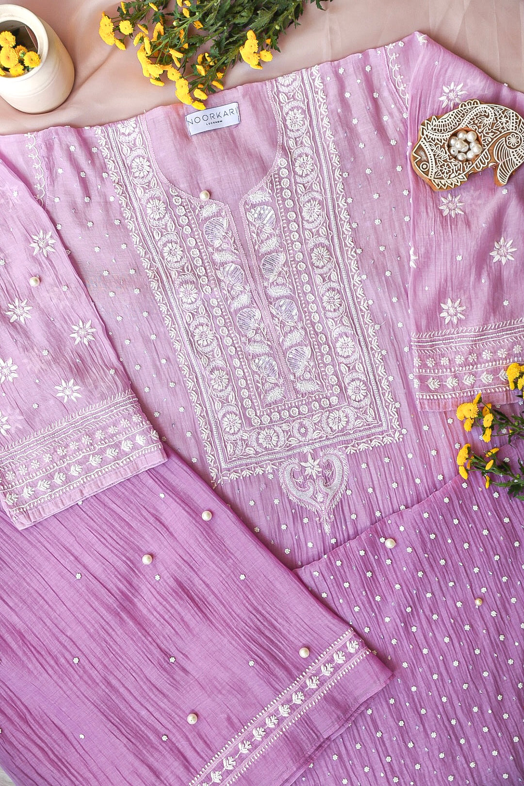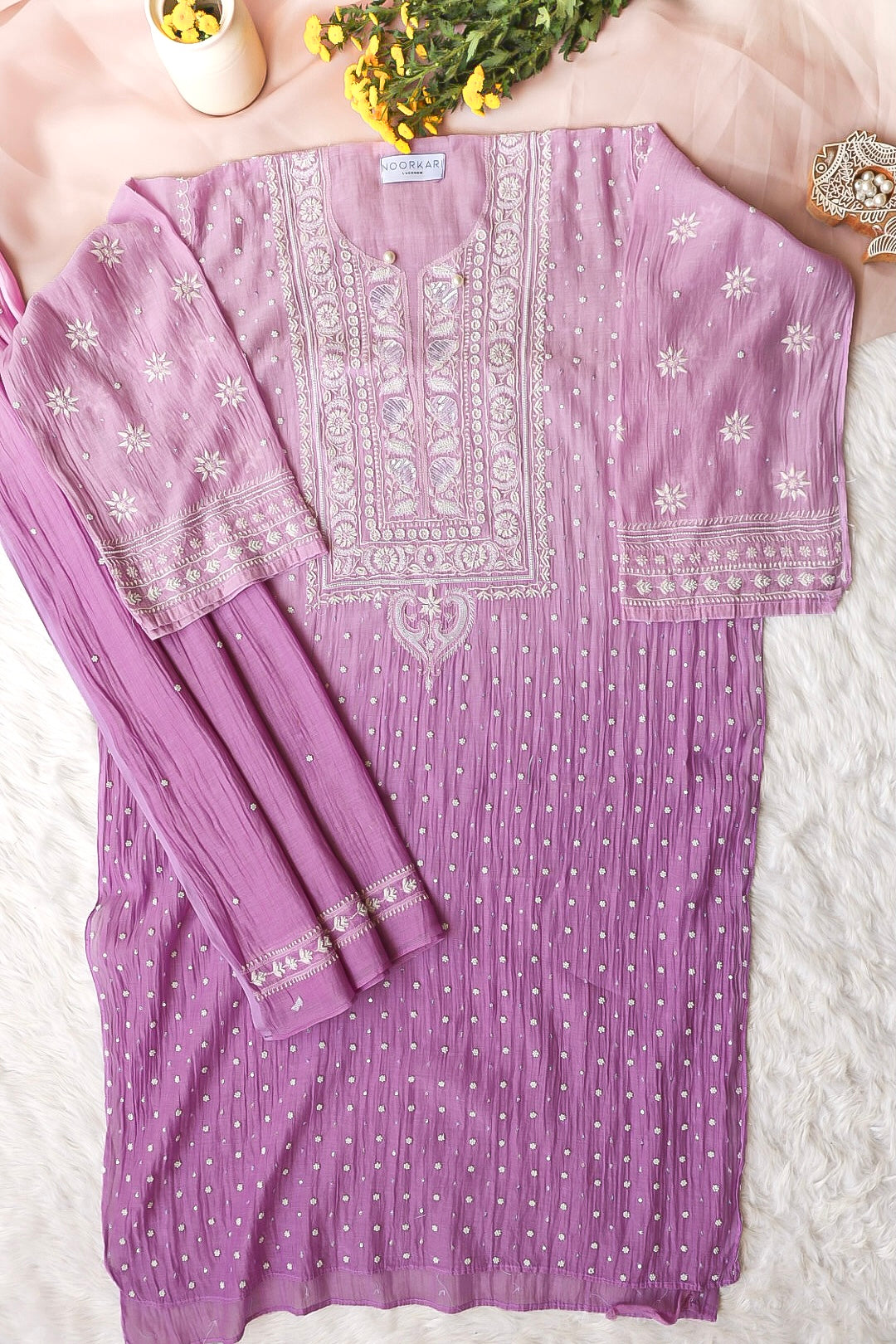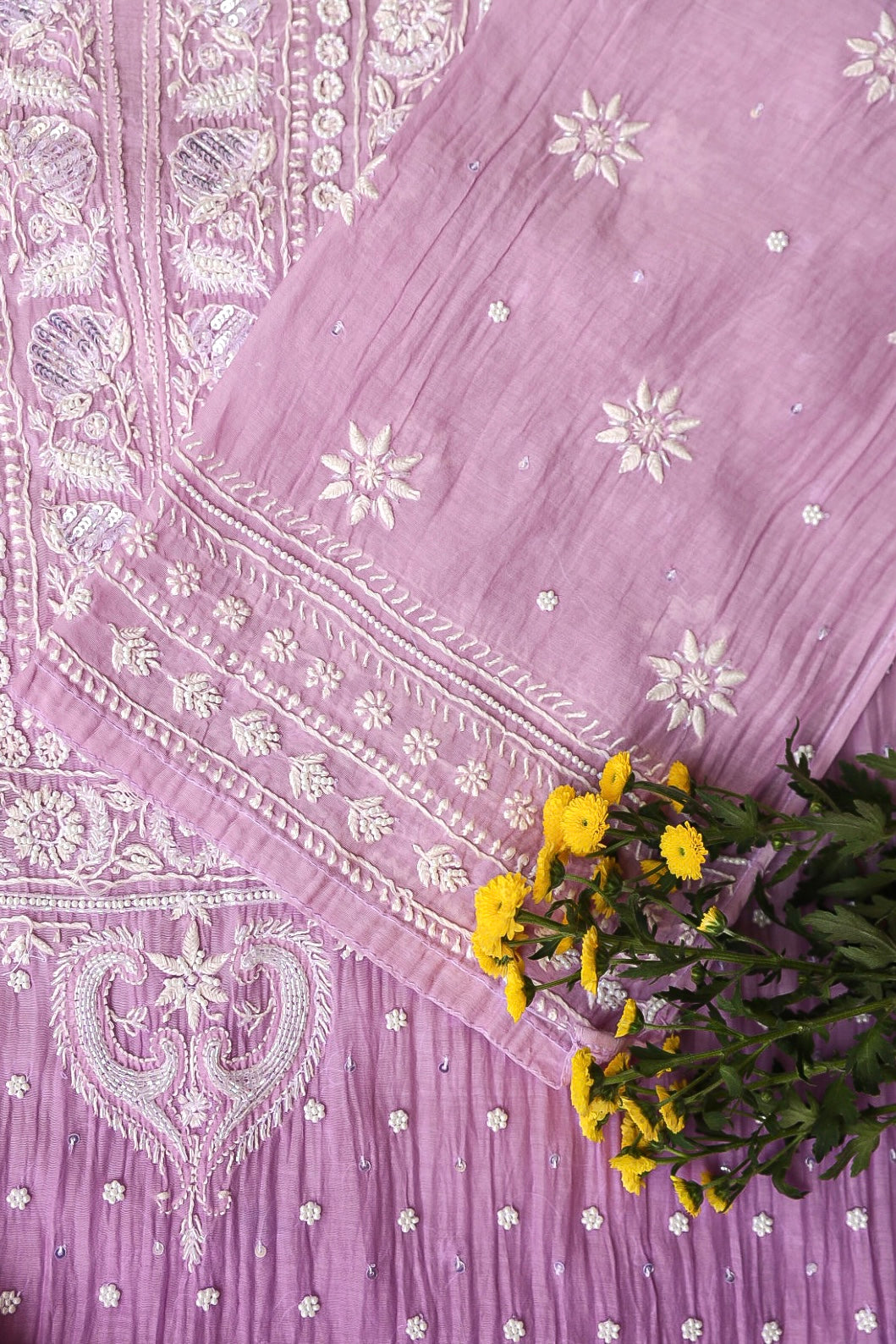 Kainaat Mul Chanderi Chikankari Kurta And Dupatta Set