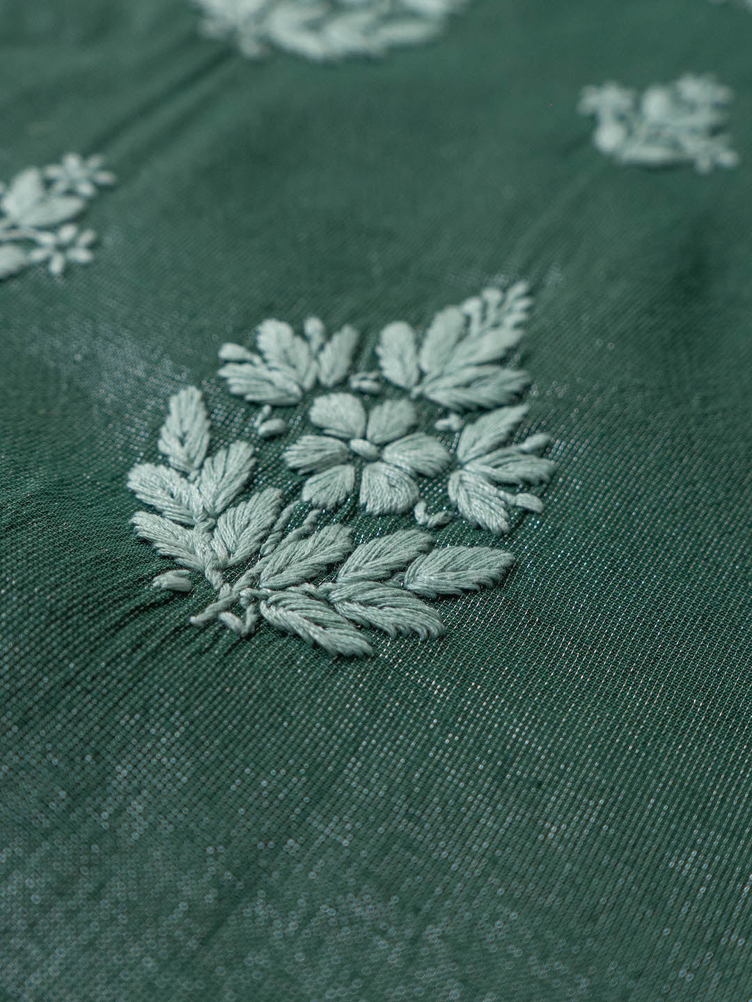 Chikankari is an Art of delicate handwork of Lucknow. It is a handcrafted process where the wooden blocks are manually carved in various designs, and the natural stew for printing is prepared, and printed on the cloth. The chikankari craftsmen then use ten ary of the needlecraft embroidery, and perform the needlework artistically. There are 32 stitches of chikankari broadly classified into Raised stitch, Embossed and Flat stitch.
