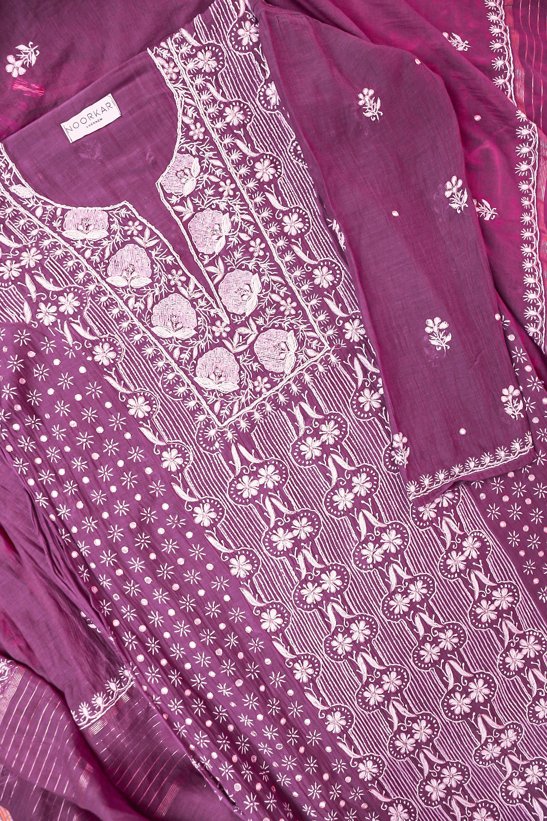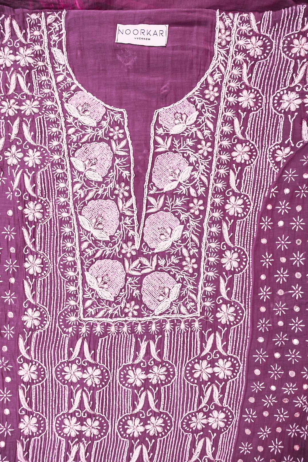 Mehvish Mul Chanderi Chikankari Kurta And Dupatta Set