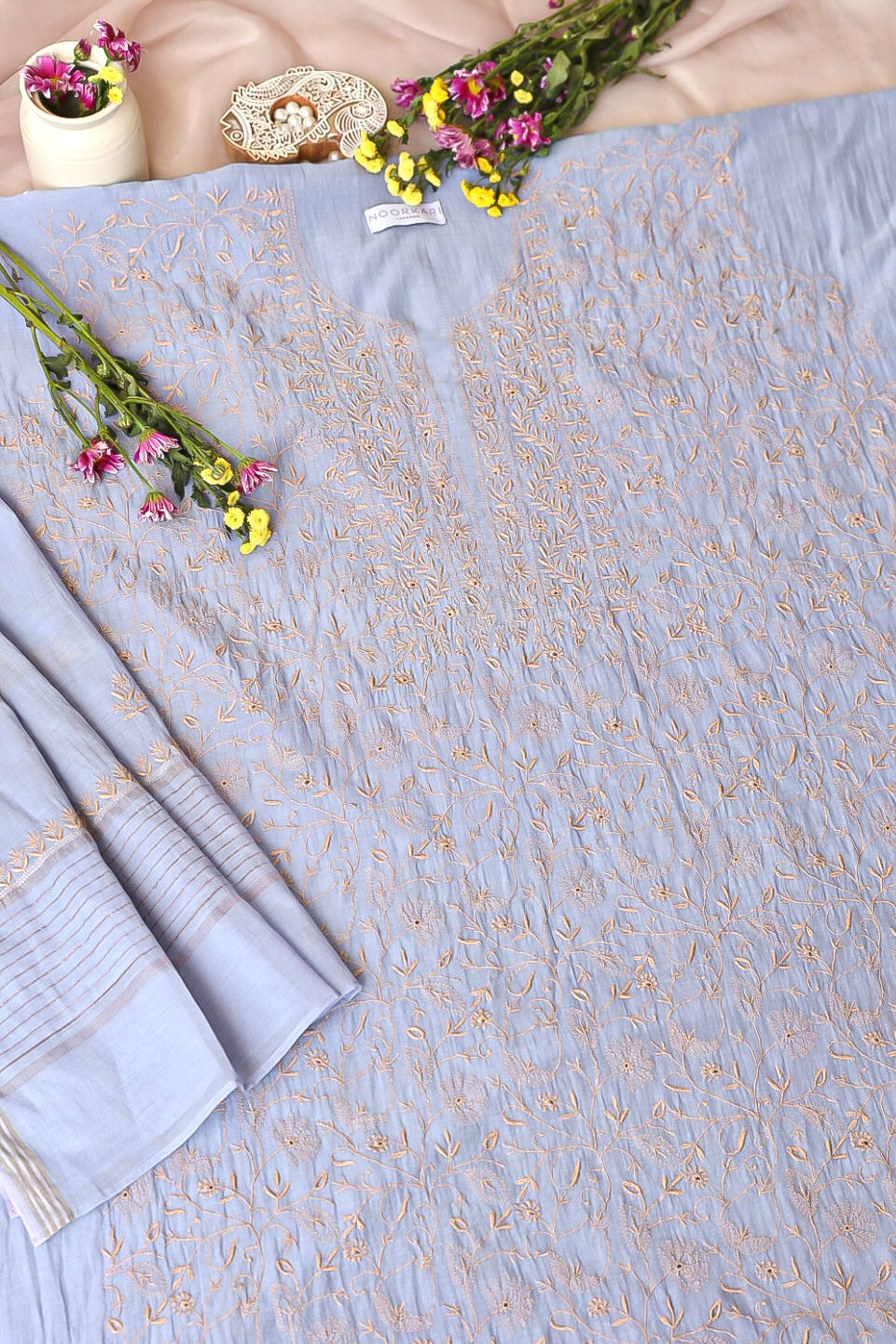 Naima Mul Chanderi Chikankari Kurta And Dupatta Set