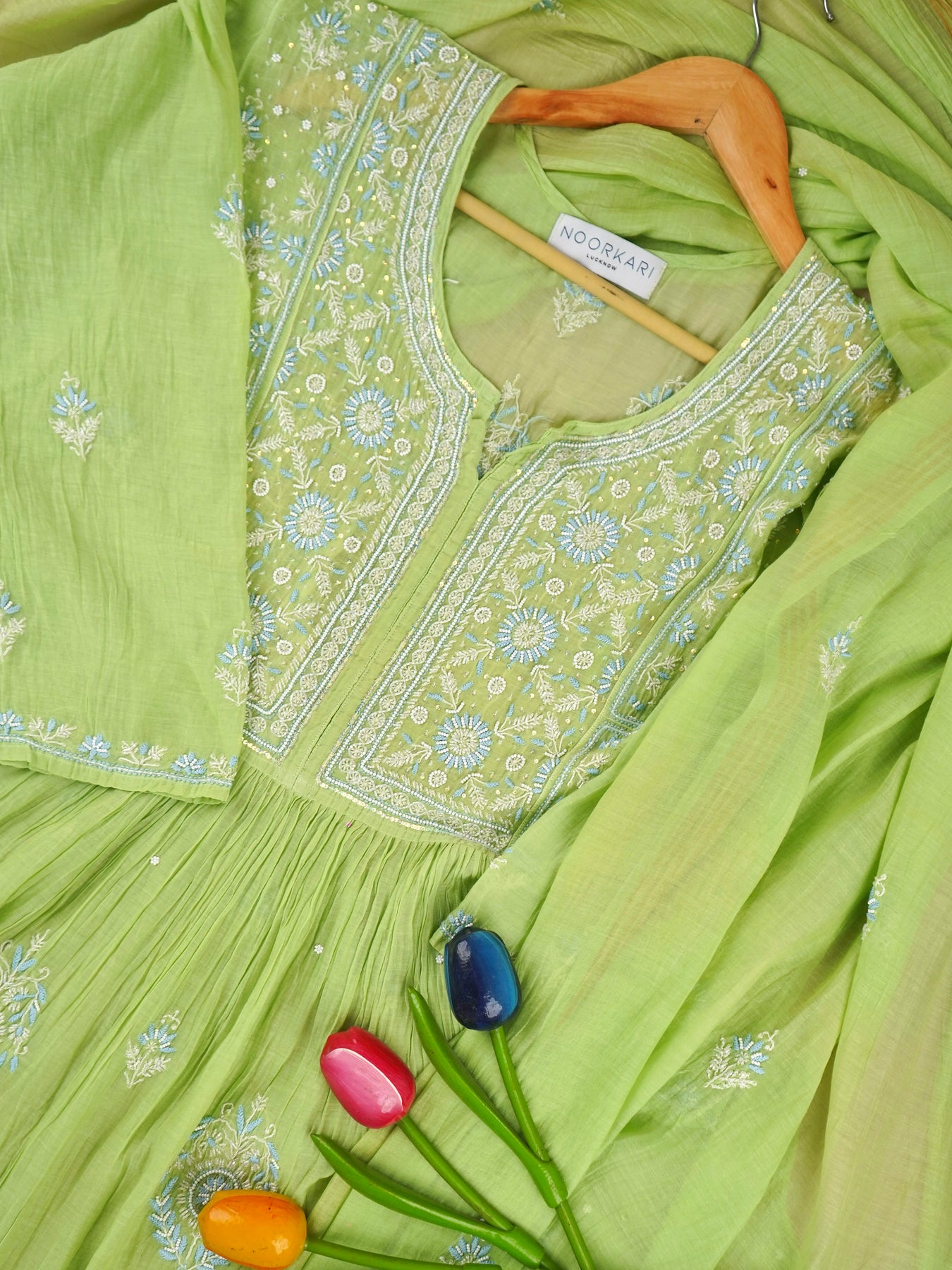 Nayna Mul Chanderi Chikankari Kurta And Dupatta Set