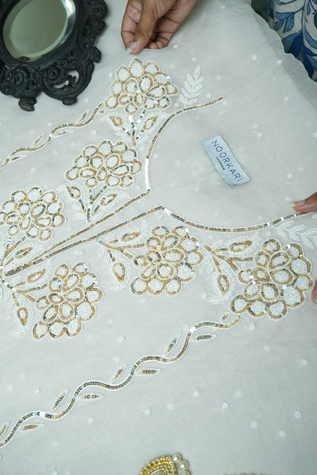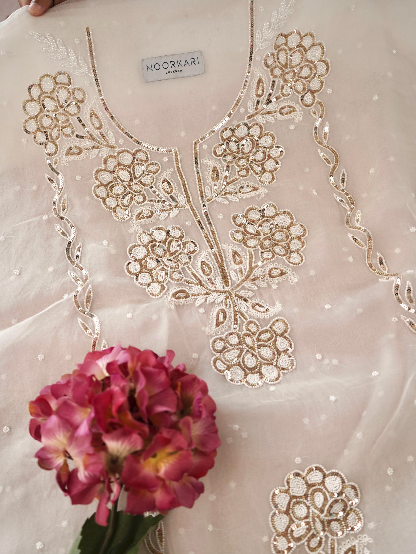 NoorPure Organza Chikankari Kurta And Dupatta Set