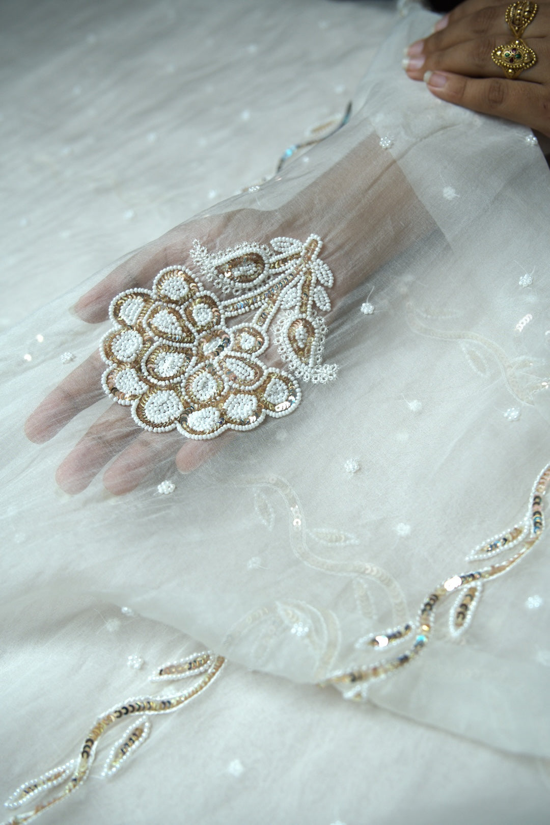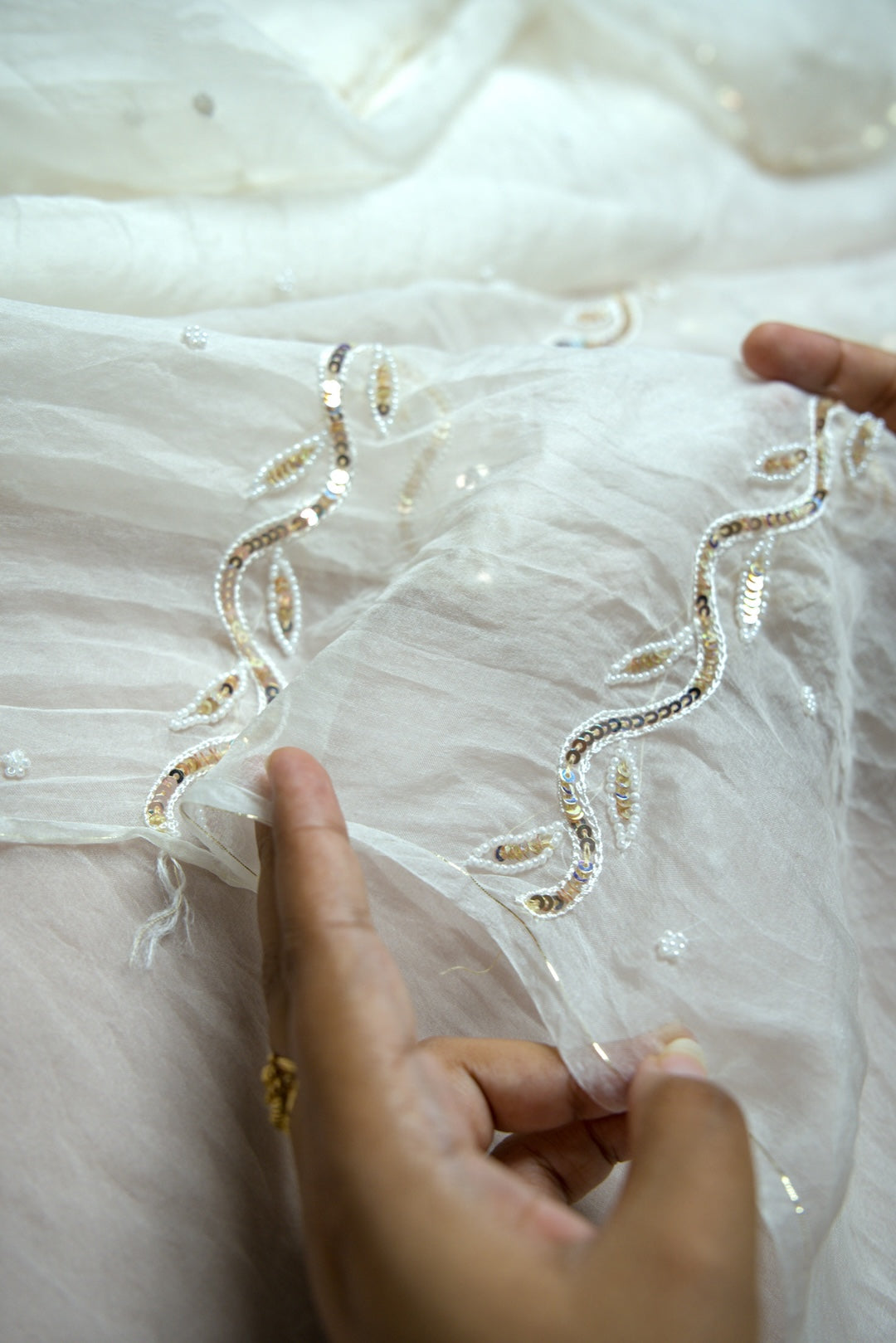Chikankari is an Art of delicate handwork of Lucknow. It is a handcrafted process where the wooden blocks are manually carved in various designs, and the natural stew for printing is prepared, and printed on the cloth. The chikankari craftsmen then use ten ary of the needlecraft embroidery, and perform the needlework artistically. There are 32 stitches of chikankari broadly classified into Raised stitch, Embossed and Flat stitch.