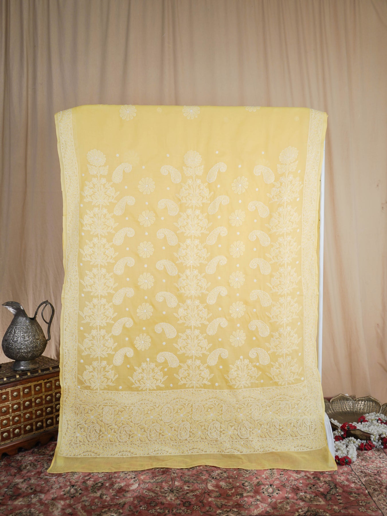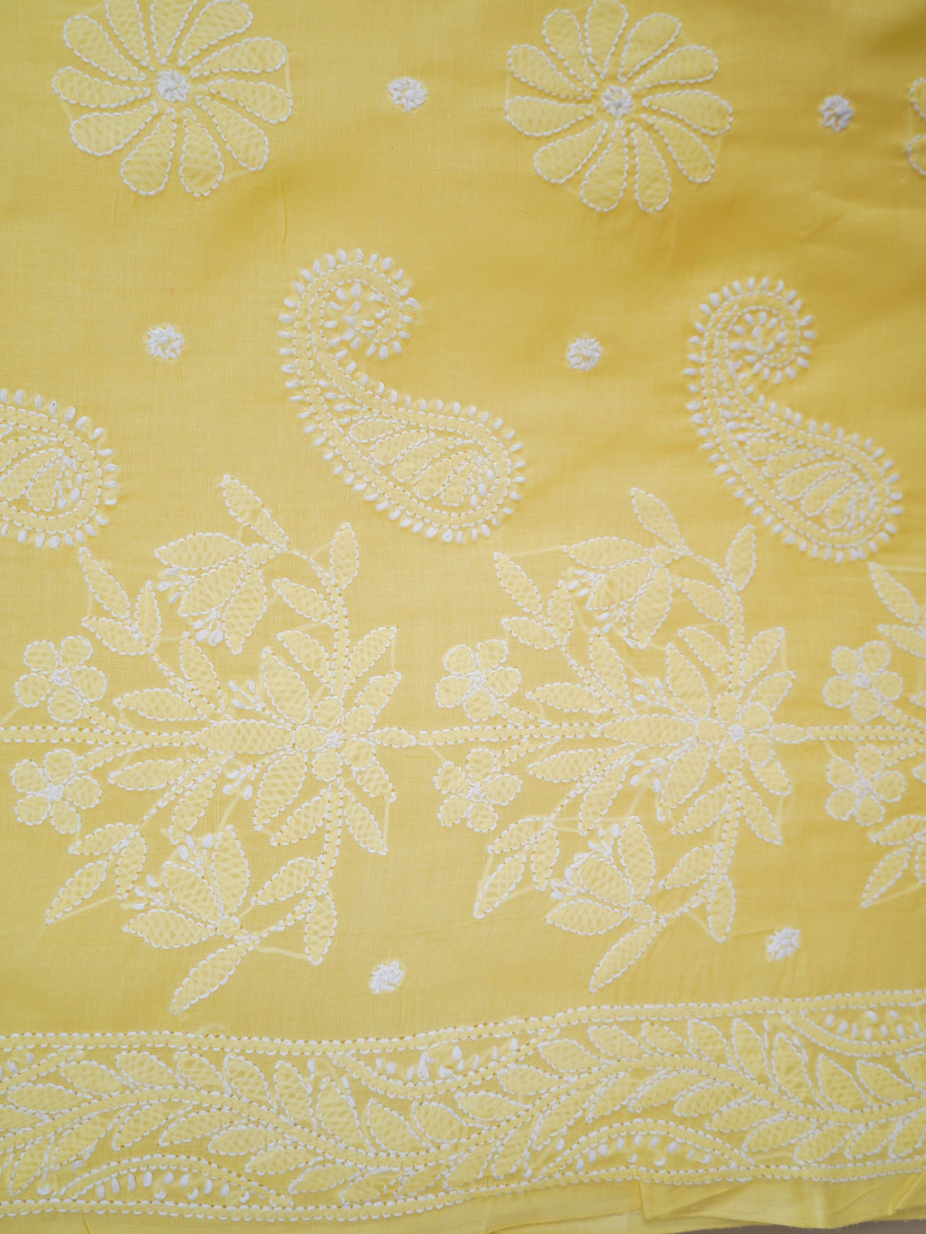 Chikankari is an Art of delicate handwork of Lucknow. It is a handcrafted process where the wooden blocks are manually carved in various designs, and the natural stew for printing is prepared, and printed on the cloth. The chikankari craftsmen then use ten ary of the needlecraft embroidery, and perform the needlework artistically. There are 32 stitches of chikankari broadly classified into Raised stitch, Embossed and Flat stitch.