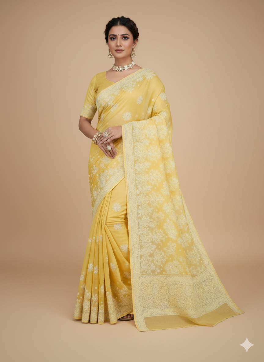 Ragini Cotton Chikankari Saree