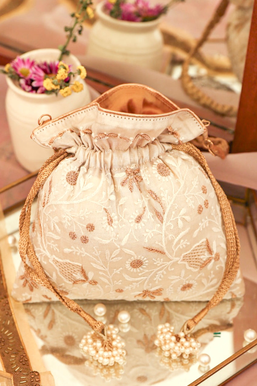 Sana Pure Silk Chikankari Potli
