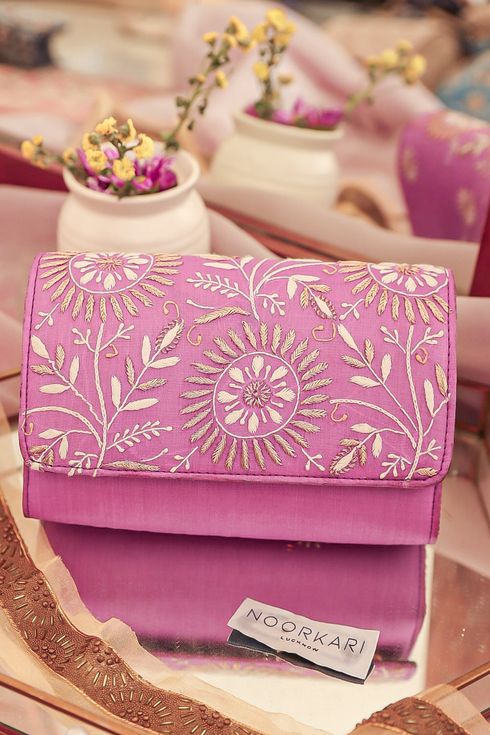The dimension of the clutch are 9 Inches x 5 Inches (Length x Width). It can fit phones of almost all sizes. Note: There might be a slight variation in the shade of the actual product and the image shown on the screen, due to the screen resolution and photography effects