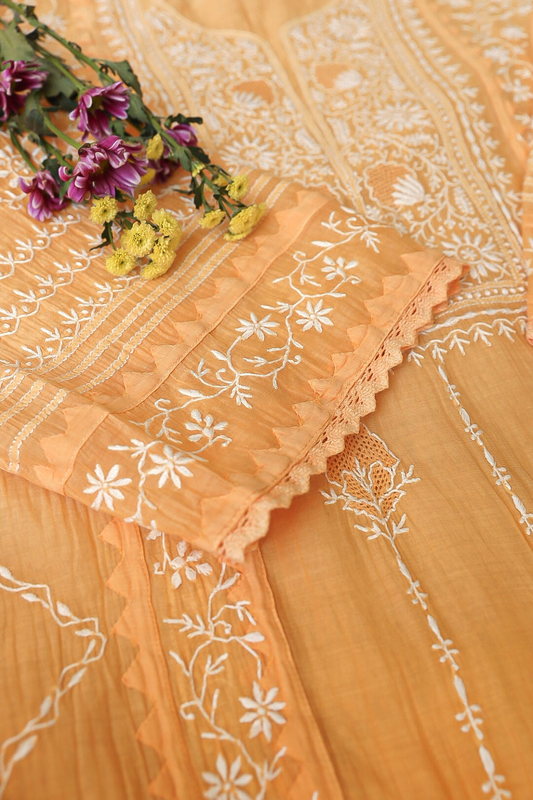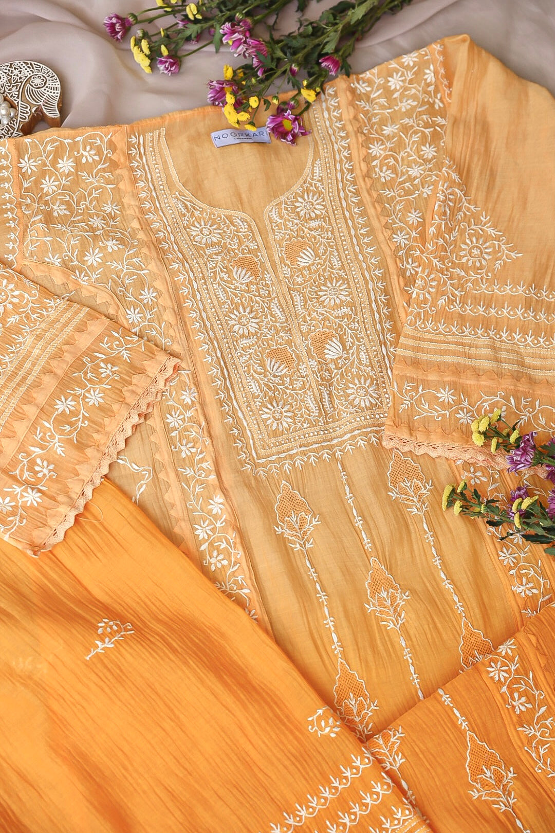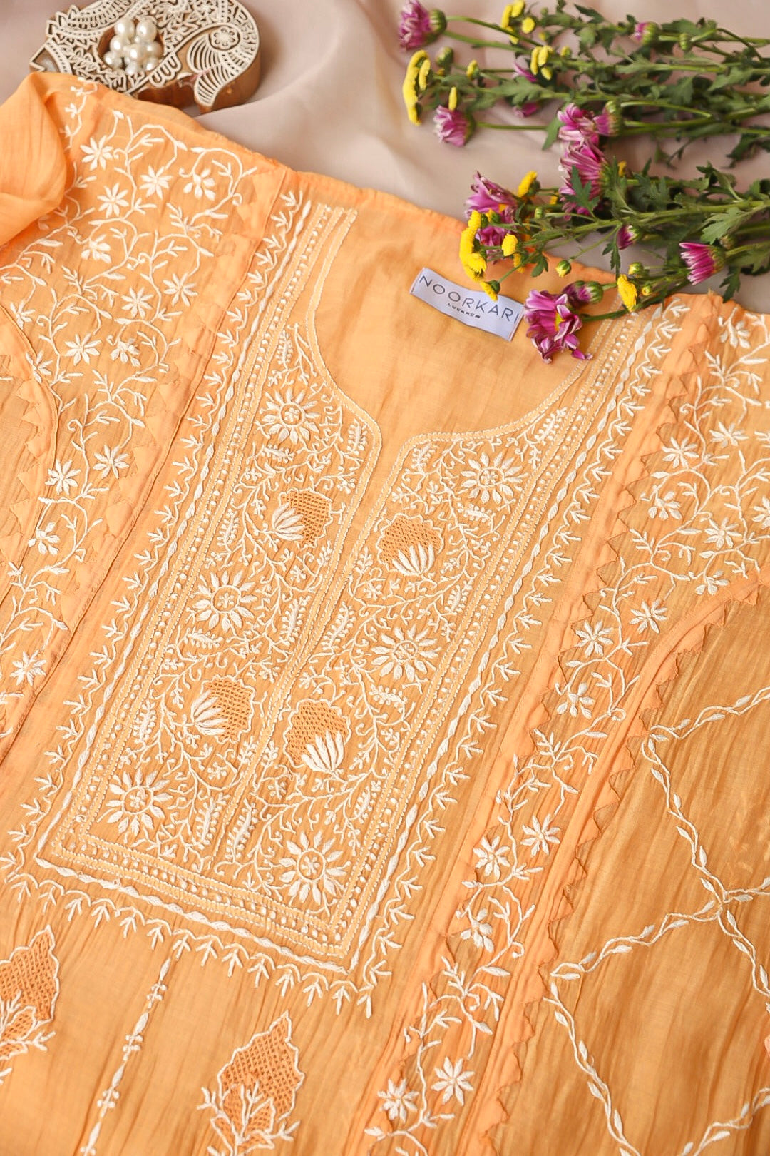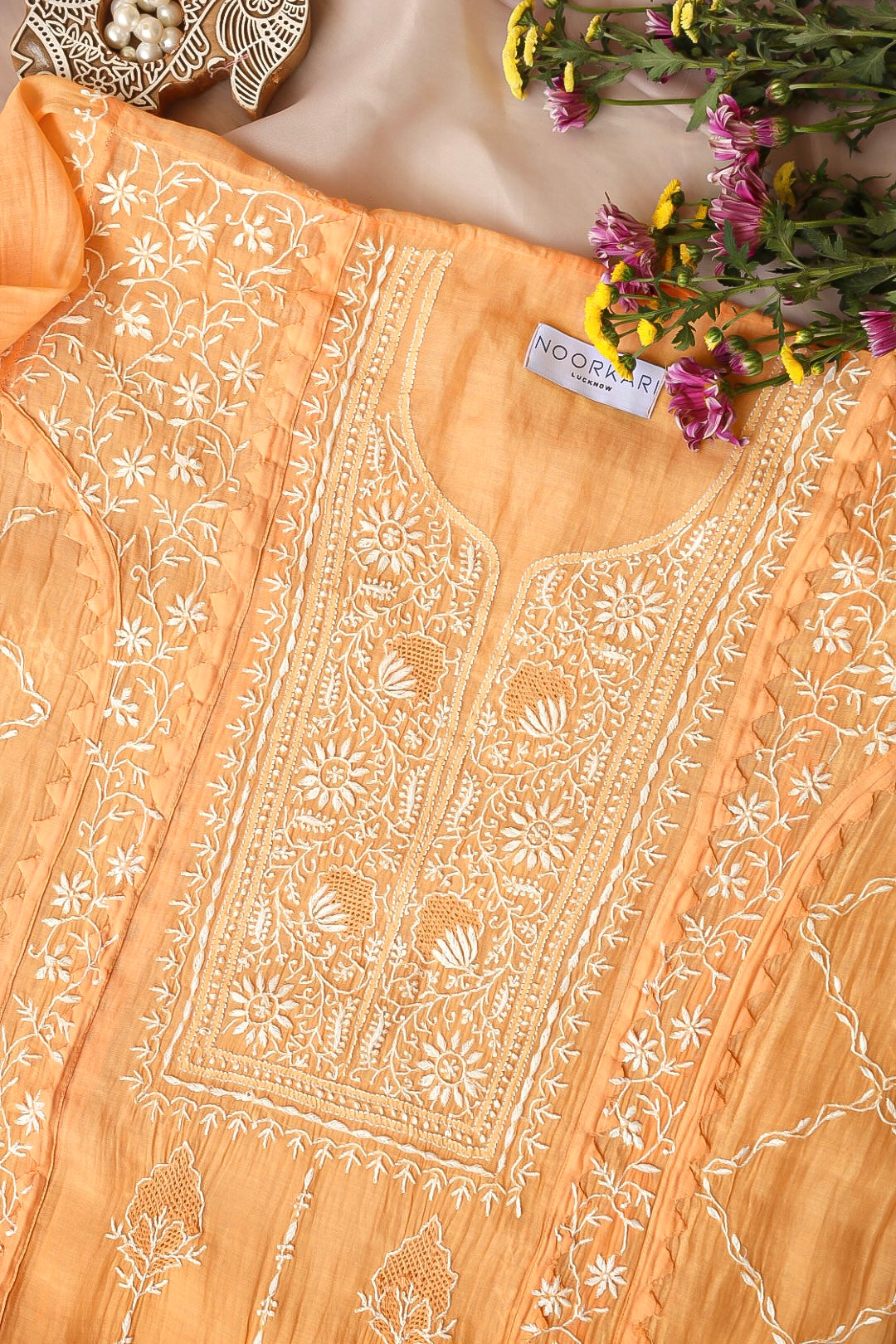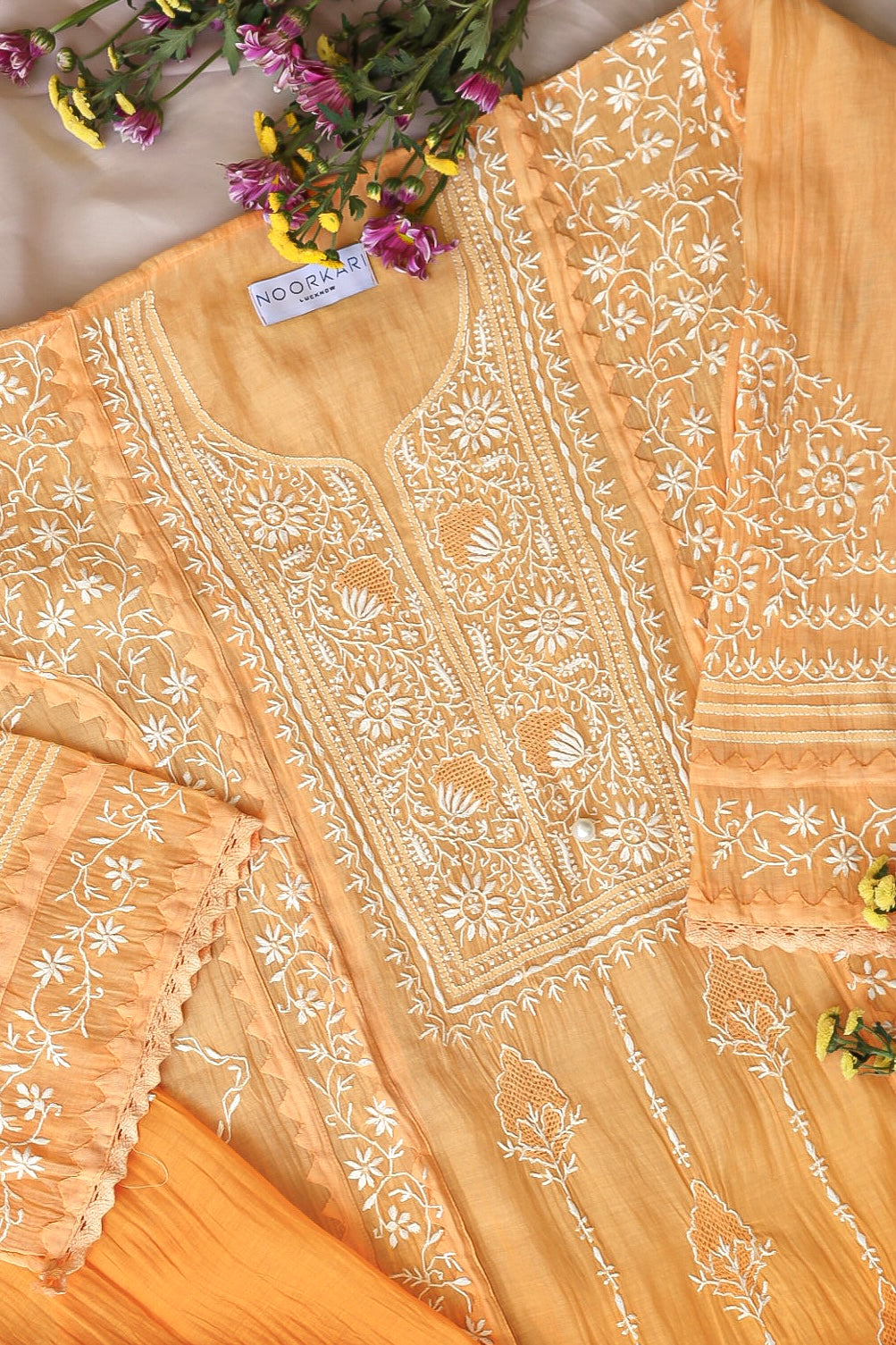 Kanika Mul Chanderi Chikankari Kurta And Dupatta Set