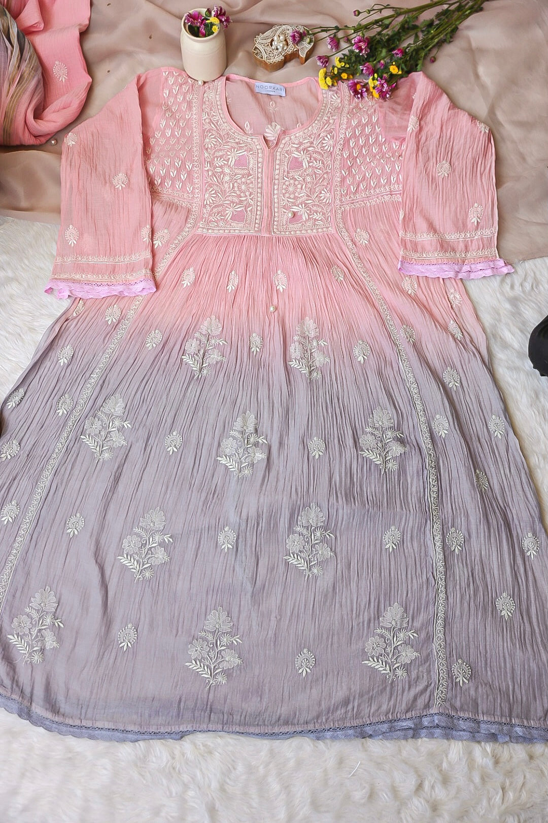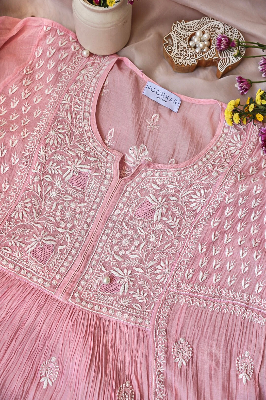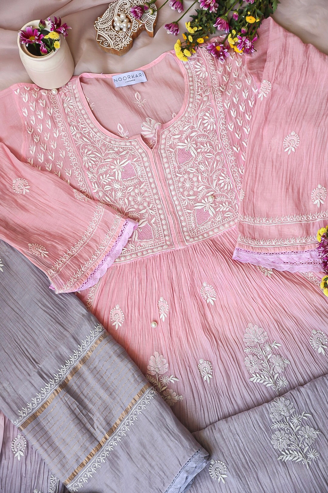 Jia Mul Chanderi Chikankari Kurta And Dupatta Set