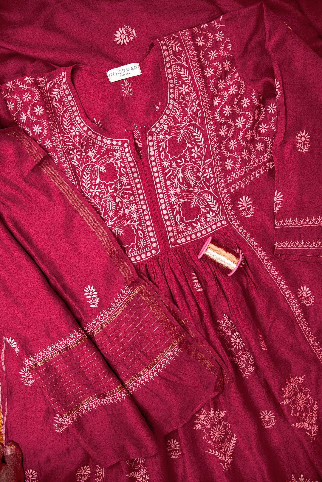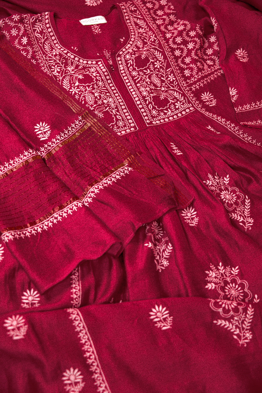 Walima Monga Silk Chikankari Frock Style Suit Set