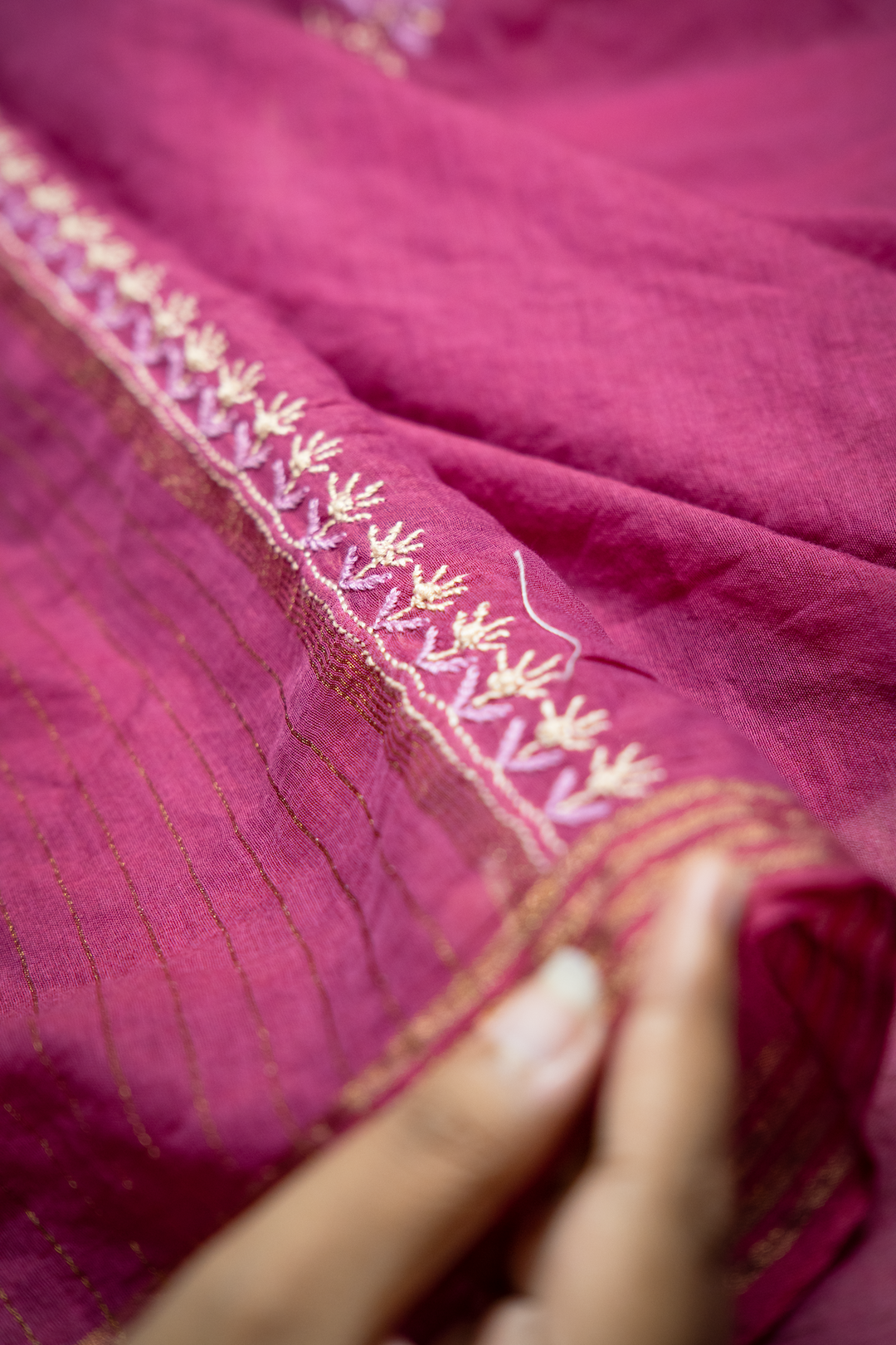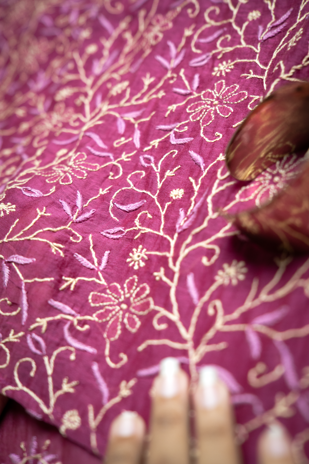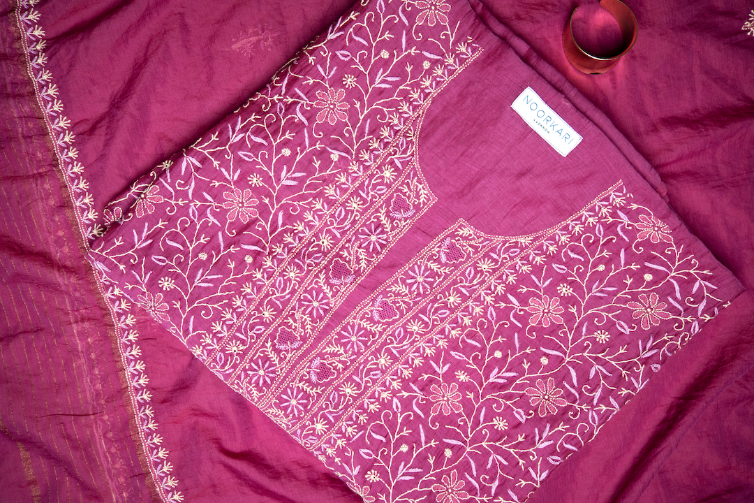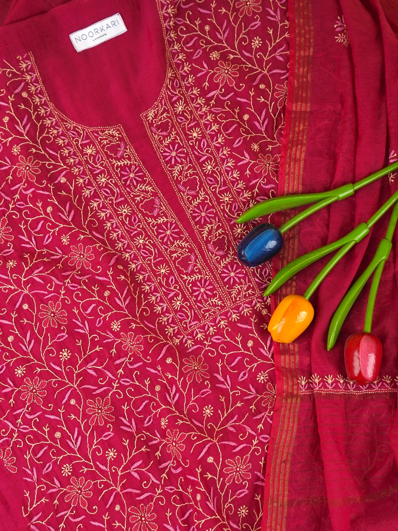 Yasmin Mul Chanderi Chikankari Kurta And Dupatta Set