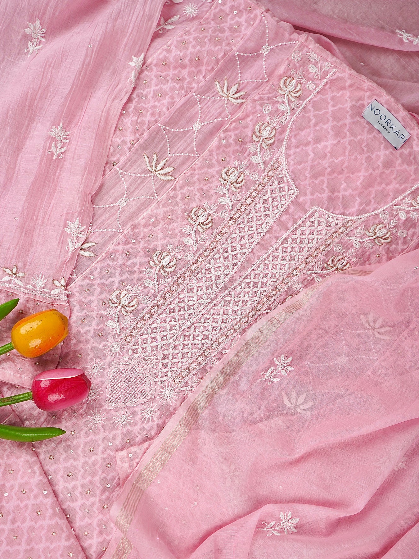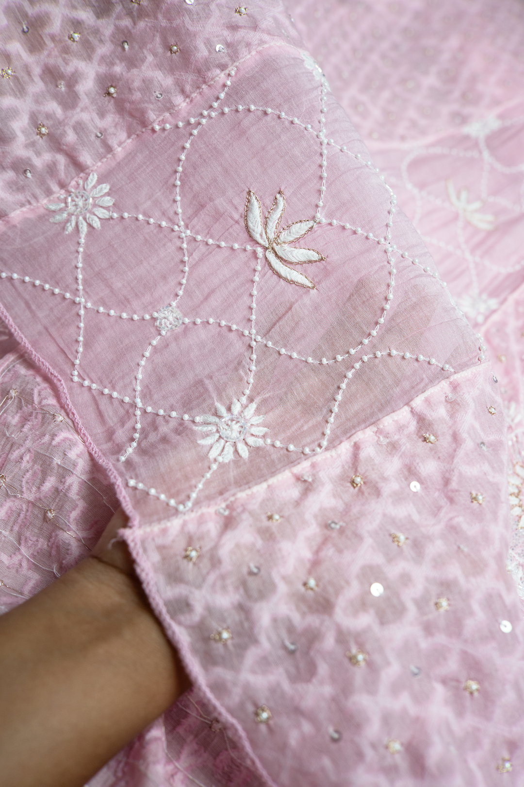 Zanbah Mul Chanderi Chikankari Anarkali And Dupatta Set