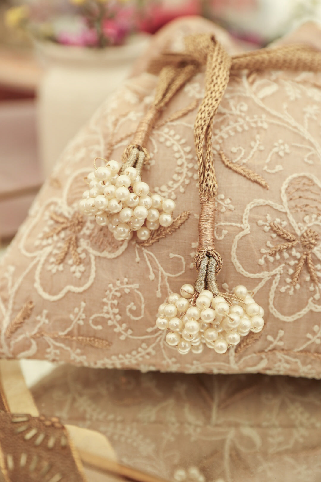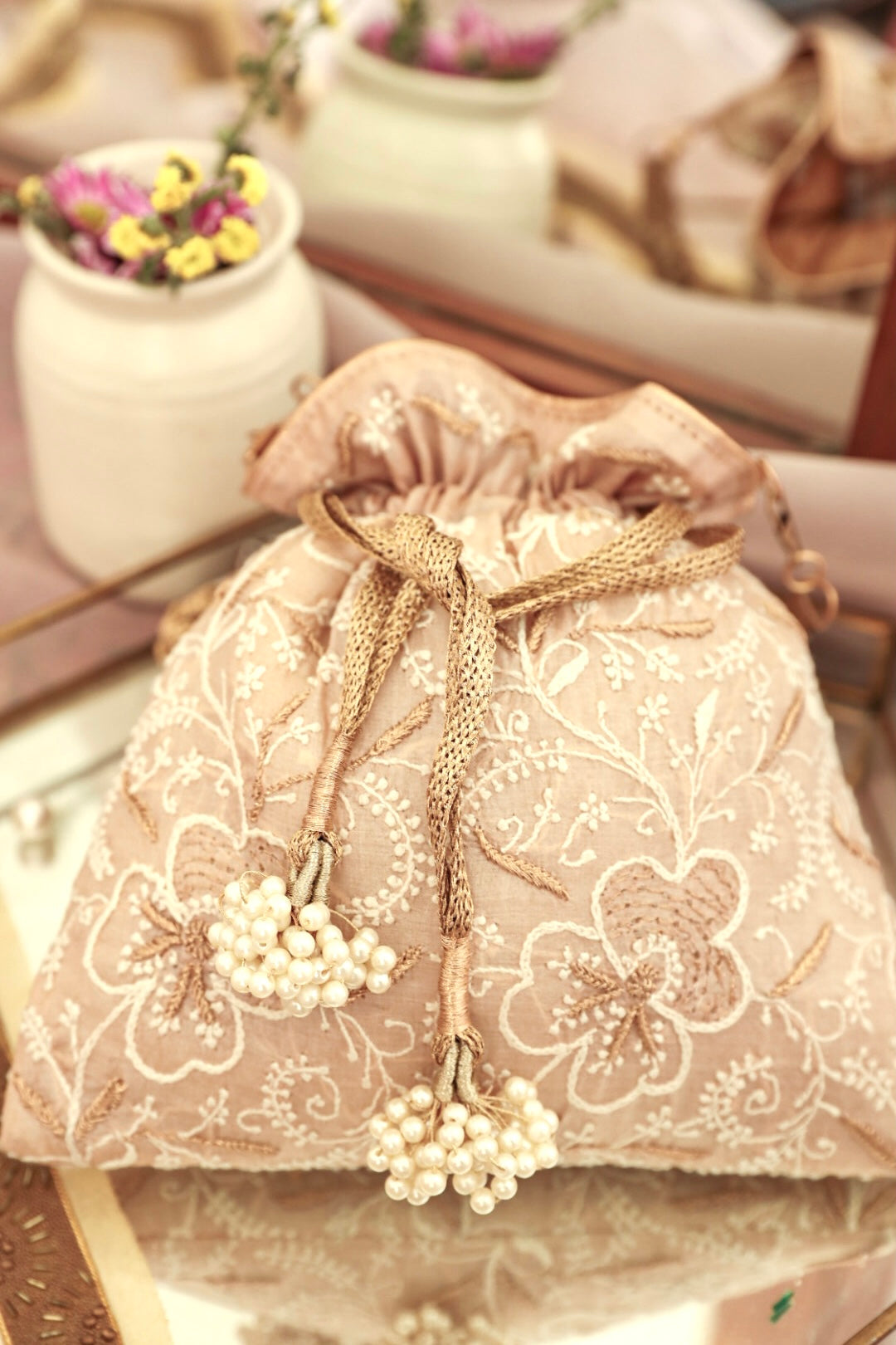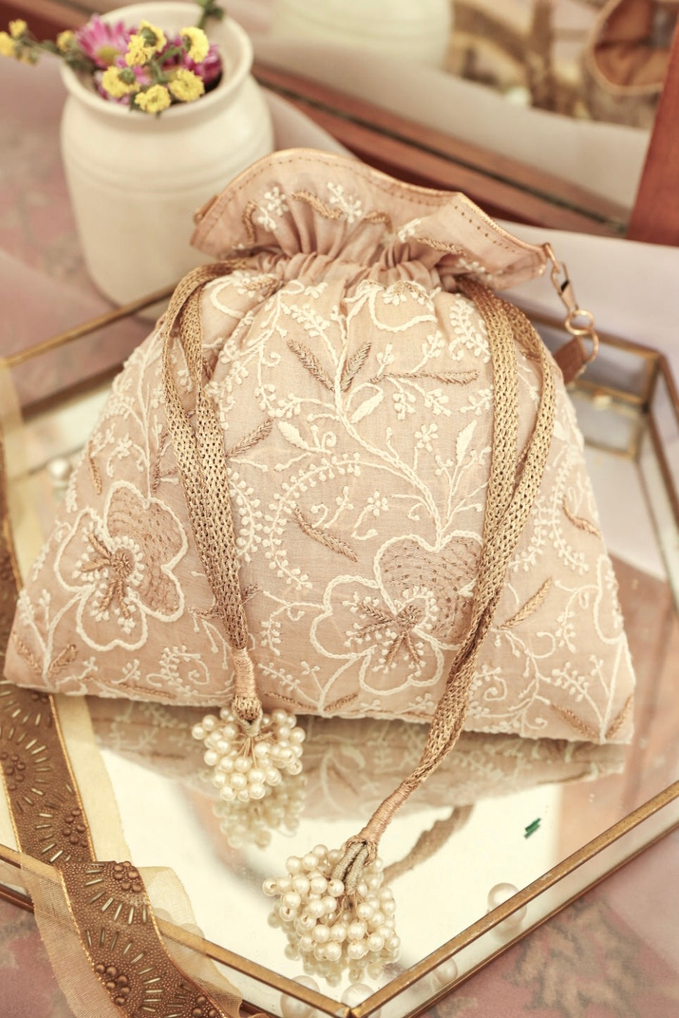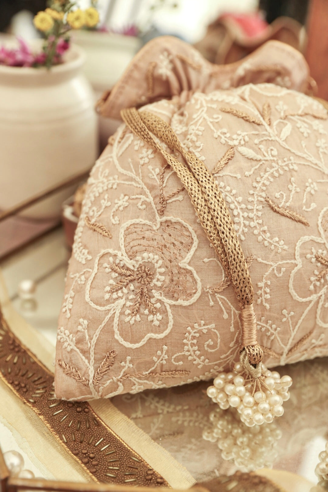 Embrace the exquisiteness of being bold and rediscover who you are! Craft new stories, cherish the love of being timeless! Inner: From the inside, the material used in potli is the silk foam. It gives a superior finish to the polti.
