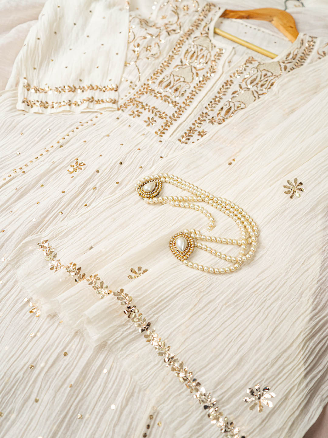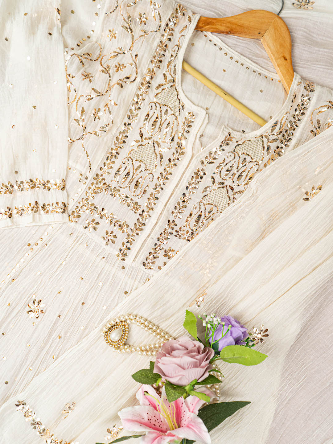 Zari Mul Chanderi Chikankari Kurta And Dupatta Set