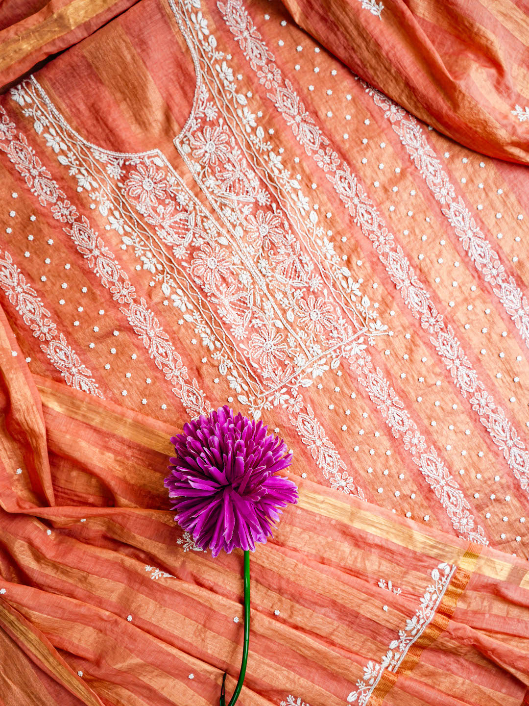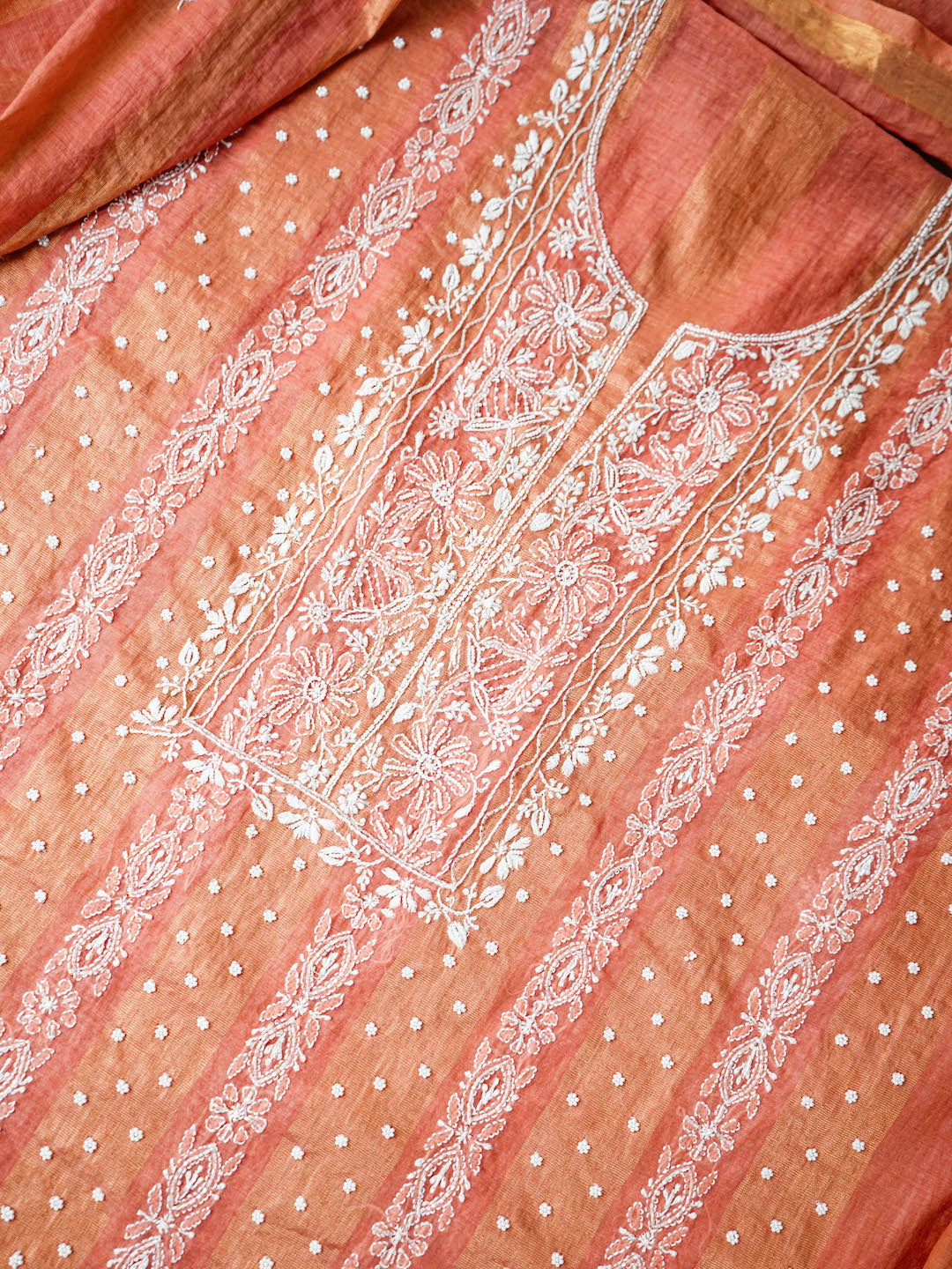 Zoya Tissue Chikankari Kurta And Dupatta Set